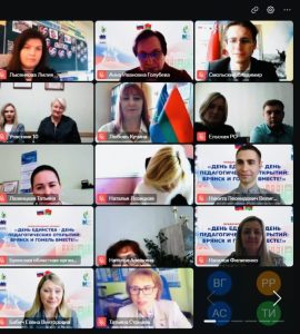 В формате телемоста с презентациями о деятельности советов молодых педагогов Брянской и Гомельской областей выступили Анастасия Сальникова, председатель Брянского областного Совета, и Никита Велигура, председатель Молодежного совета Гомельской областной организации.