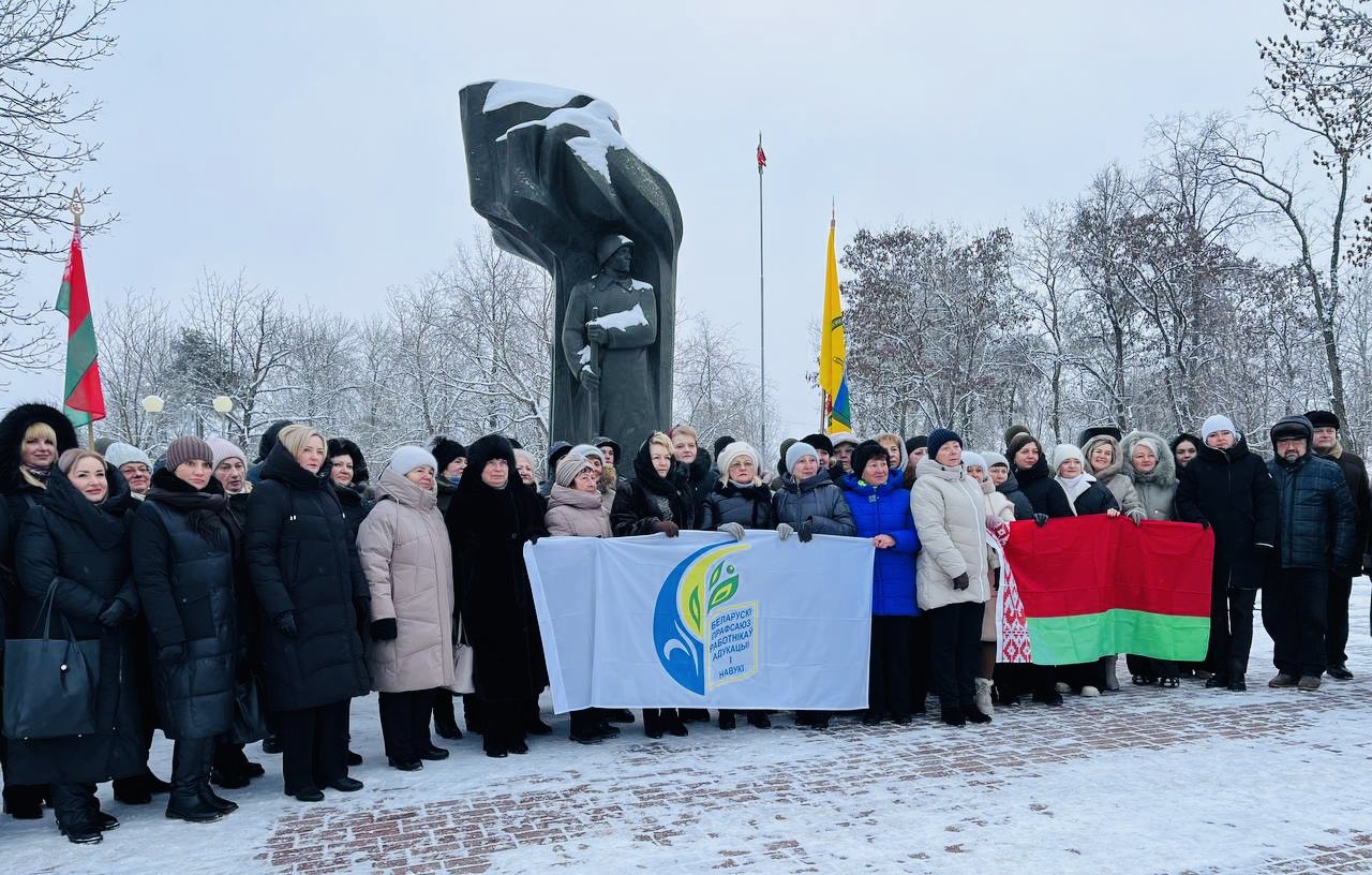 Сегодня в Рогачеве собрались лидеры районных организаций Профсоюза, первичных профсоюзных организаций ВУЗов, а также члены областного Совета ветеранов. Рабочий день начался у Братской могилы воинов Красной Армии, погибших во время освобождения города Рогачева. И мороз не помешал участникам встречи склонить головы в память о погибших и возложить цветы к мемориалу.