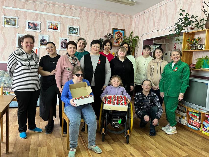 Отделением социальной реабилитации инвалидов учреждения “Светлогорский социальный центр по обслуживанию населения” в преддверии праздника 9 Мая объявлена благотворительная акция по изготовлению сувенирной продукции “ЦВЕТОК ВЕЛИКОЙ ПОБЕДЫ”. Профсоюзные активисты учреждений образования организовали участие в акции членов профсоюза, приобрели бутоньерки для работников и учащихся. Таким образом была оказана финансовая помощь на укрепление материально-технической базы центра.