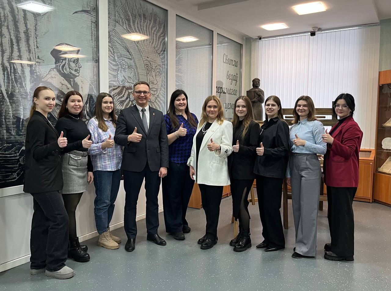 В Гомельском государственном университете имени Франциска Скорины состоялось заседание Молодежного совета Гомельской областной организации Профсоюза. Мастер-класс «Голос лидера» для членов Молодежного совета провела старший преподаватель кафедры социальной и педагогической психологии Анастасия Смык. В завершении плодотворной работы профсоюзные лидеры посетили спектакль по пьесе Сергея Зенькова «Куда?!. Куда?!. Куда?!..»