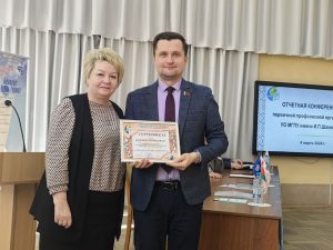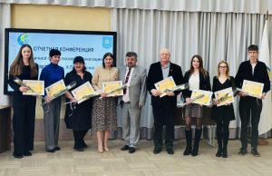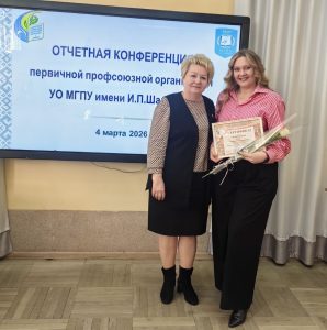Председатель областной организации вручила сертификат на получение ежегодной премии областного комитета молодому учёному Людмиле Тозик, а также сертификат на развитие материально-технической базы университета ректору Валерию Навныко.